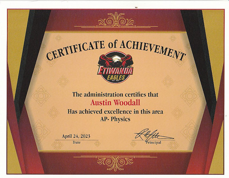"Best student in AP Physics and AP Calculus. Class savior of Focus on Concepts competitions. Answers every verbal question during lessons, no matter how difficult."